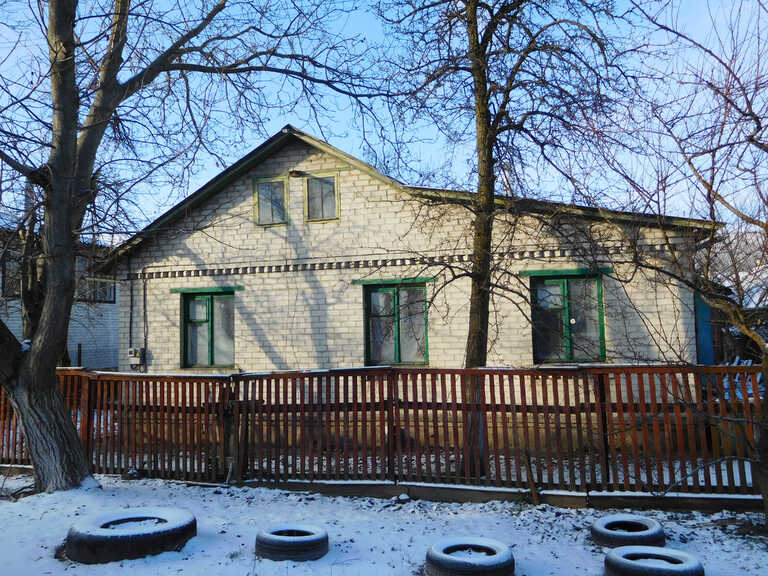 70 км от Киева. Хорошая транспортная развязка. Центр городка.2 этажа.1 этаж-хоз. постройки. Общ-300 кв. Жилая-200. В доме-газ, вода-гарячая и холодная, телефон.